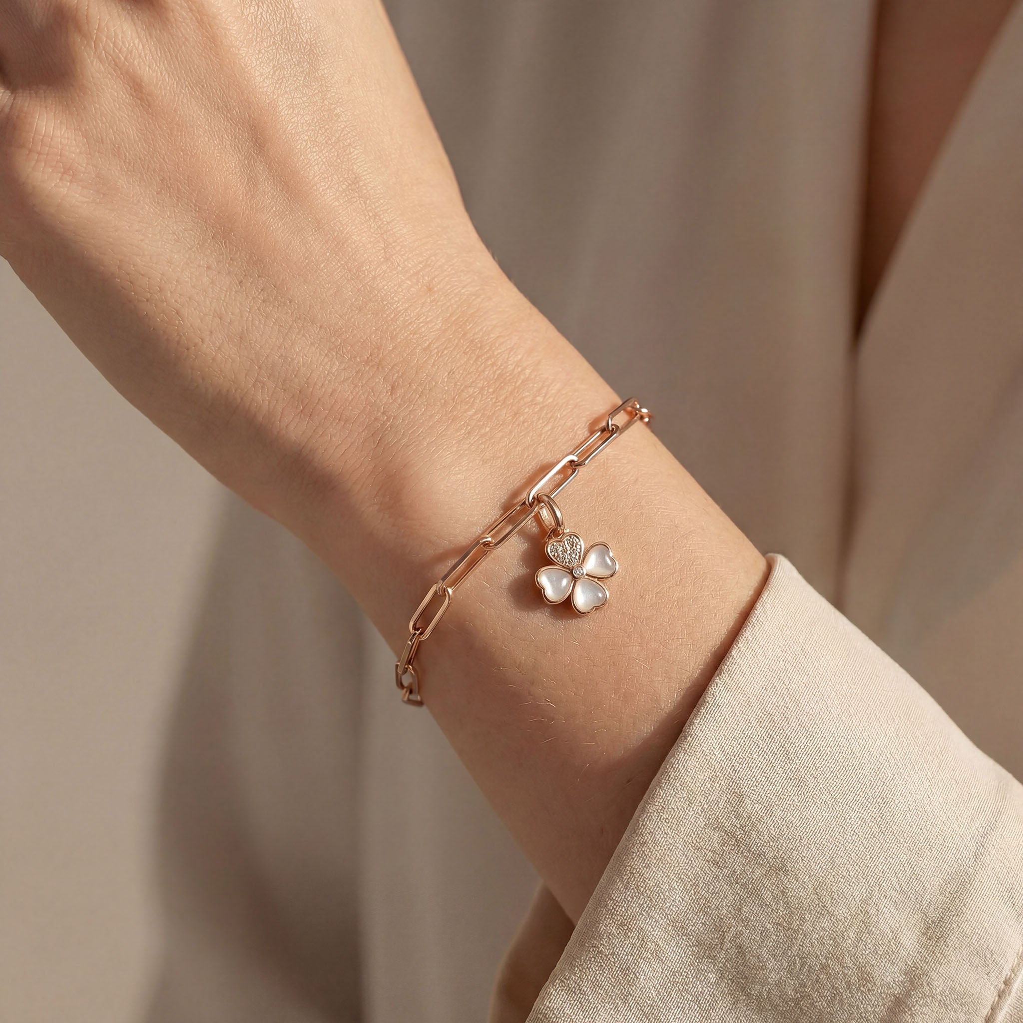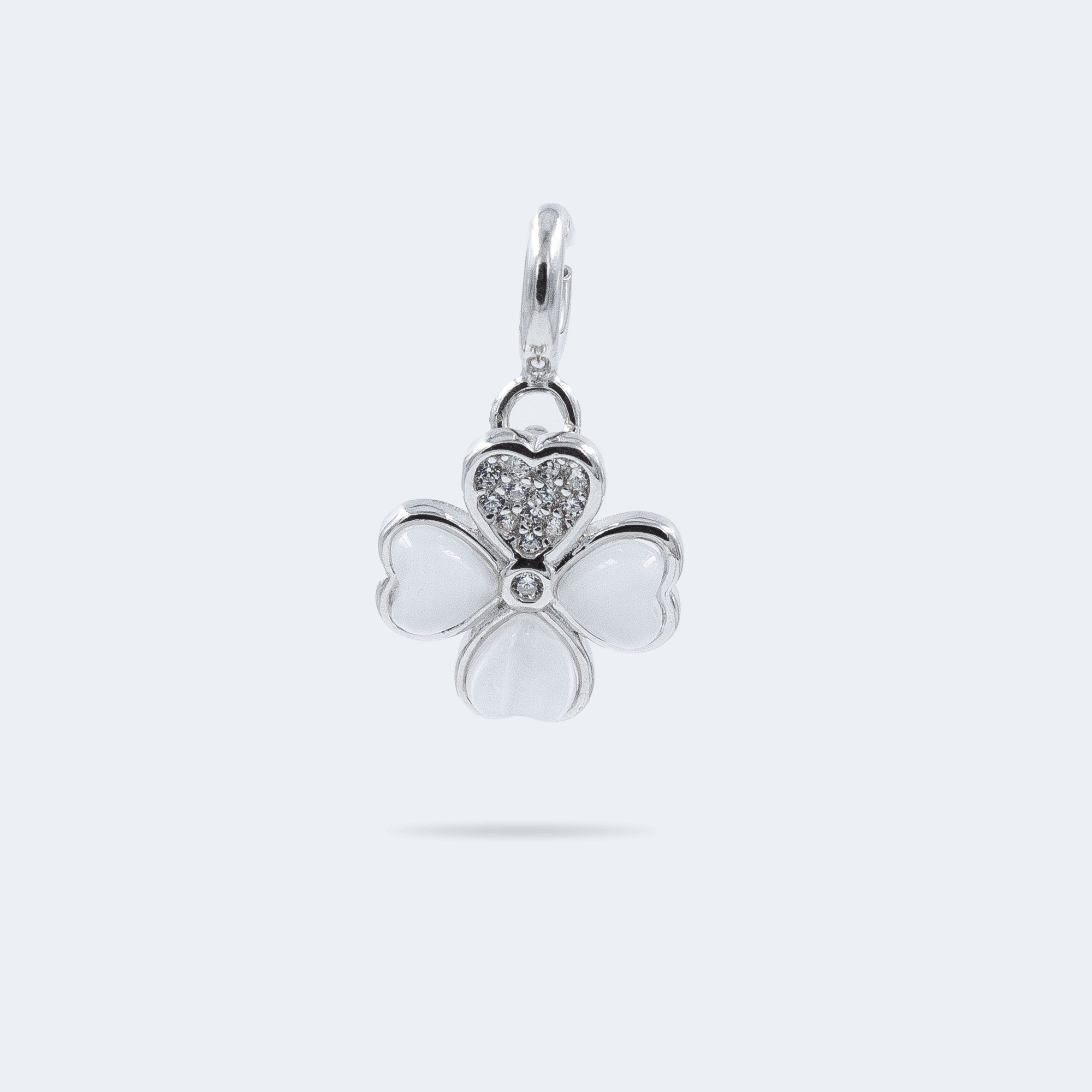 The Good Luck Charm is crafted in pure 925 sterling silver with a delicate four leaf clover design. Heart shaped petals symbolize love, luck, hope, and faith. The elegant charm adds meaning and sparkle to your jewellery collection. Finished with an anti tarnish and hypoallergenic coating, this silver charm is perfect for creating a charm bracelet or wearing on a chain.