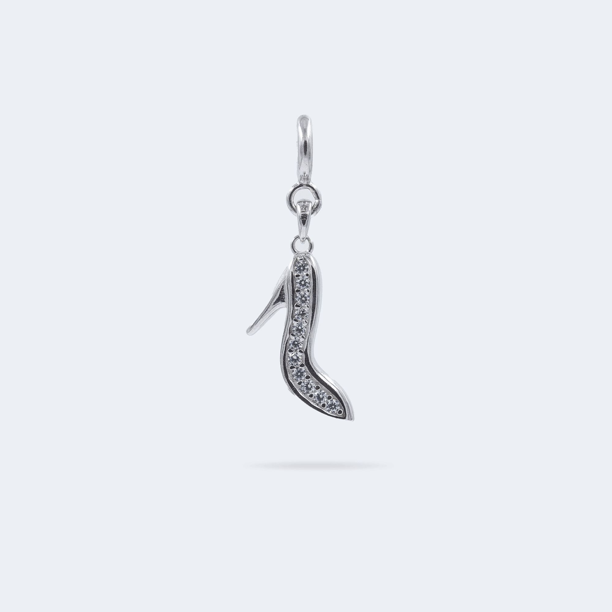 The Stiletto Charm is crafted in pure 925 sterling silver with a striking high heel silhouette. Sparkling cubic zirconia stones add brilliant shine and feminine elegance. The playful design celebrates confidence and timeless style. Finished with an anti tarnish and hypoallergenic coating, this charm is perfect for creating a charm bracelet or wearing on a chain.