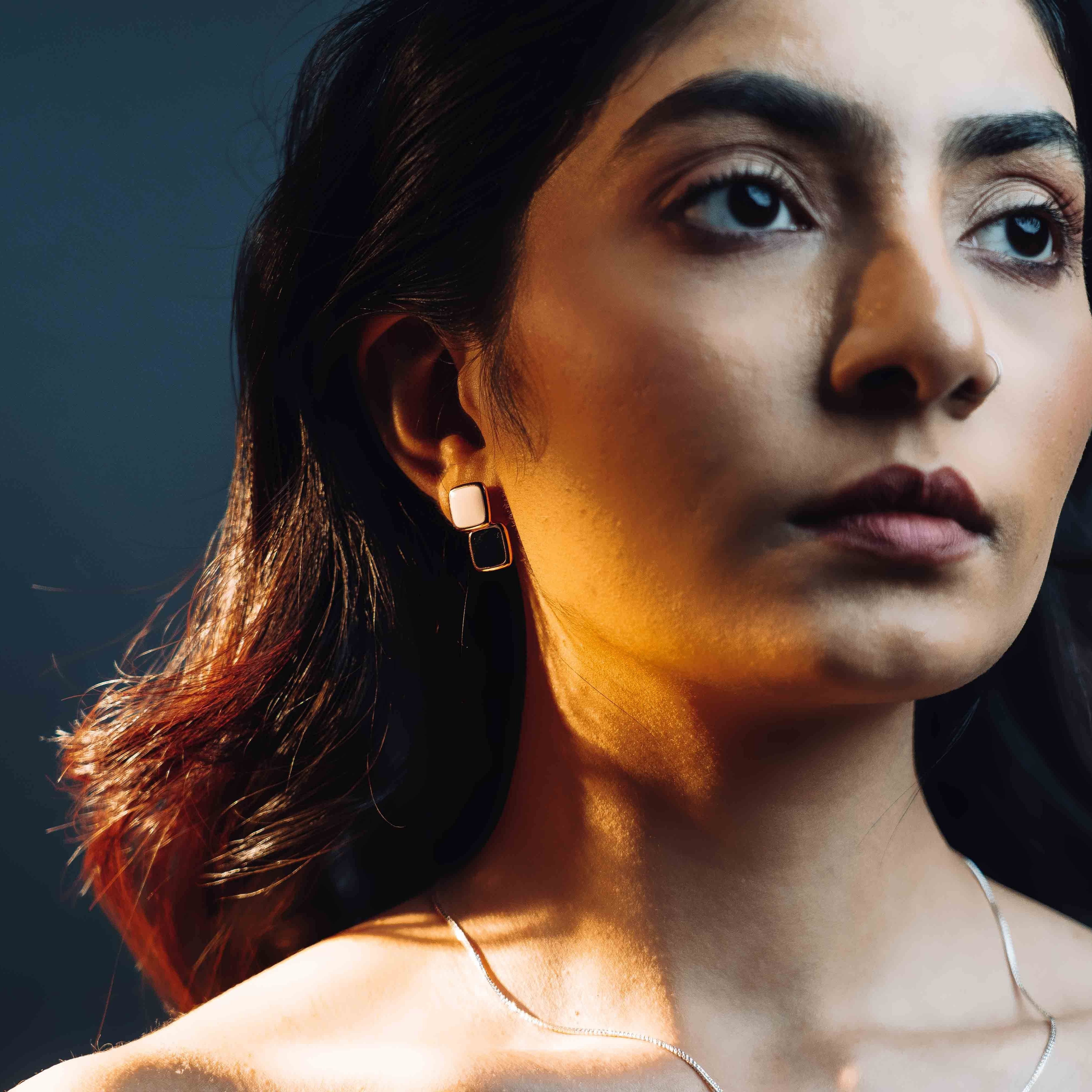 The Chess Earrings are crafted in certified 925 sterling silver and feature a playful yet elegant design. Rose gold tones frame two enamel squares in contrasting black and white, creating a charming chessboard pattern. Finished with an anti tarnish coating and made hypoallergenic for sensitive ears, these silver earrings offer lasting shine and effortless style.