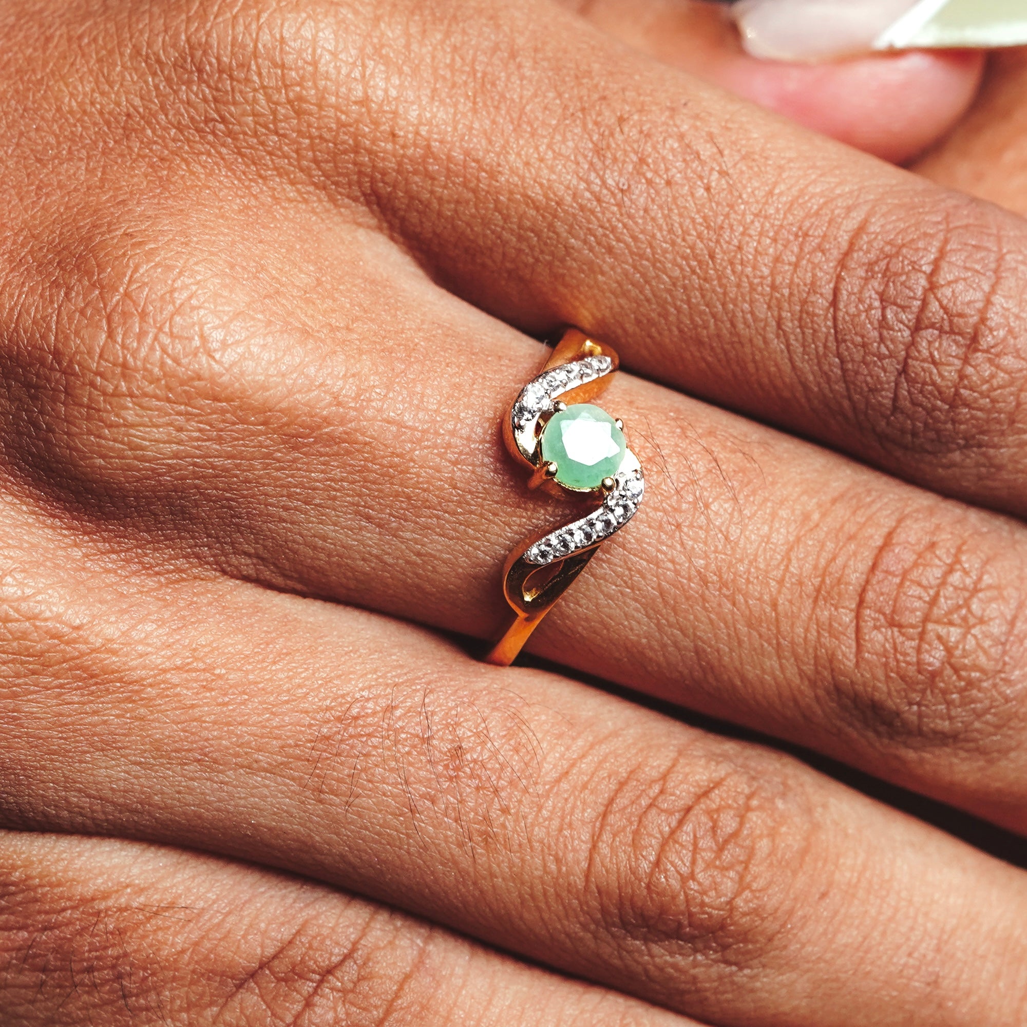 A delicate ode to serenity, the Mint Mirage Ring showcases a soft Emerald gemstone along with White Topaz, elegantly cradled between flowing curves of premium 925 sterling silver with gold vermeil. ThisĀ silver ring captures the essence of quiet elegance, making it perfect for those who speak volumes through their presence. Timeless and refined, it’s a ringĀ that complements both everyday style and special moments.