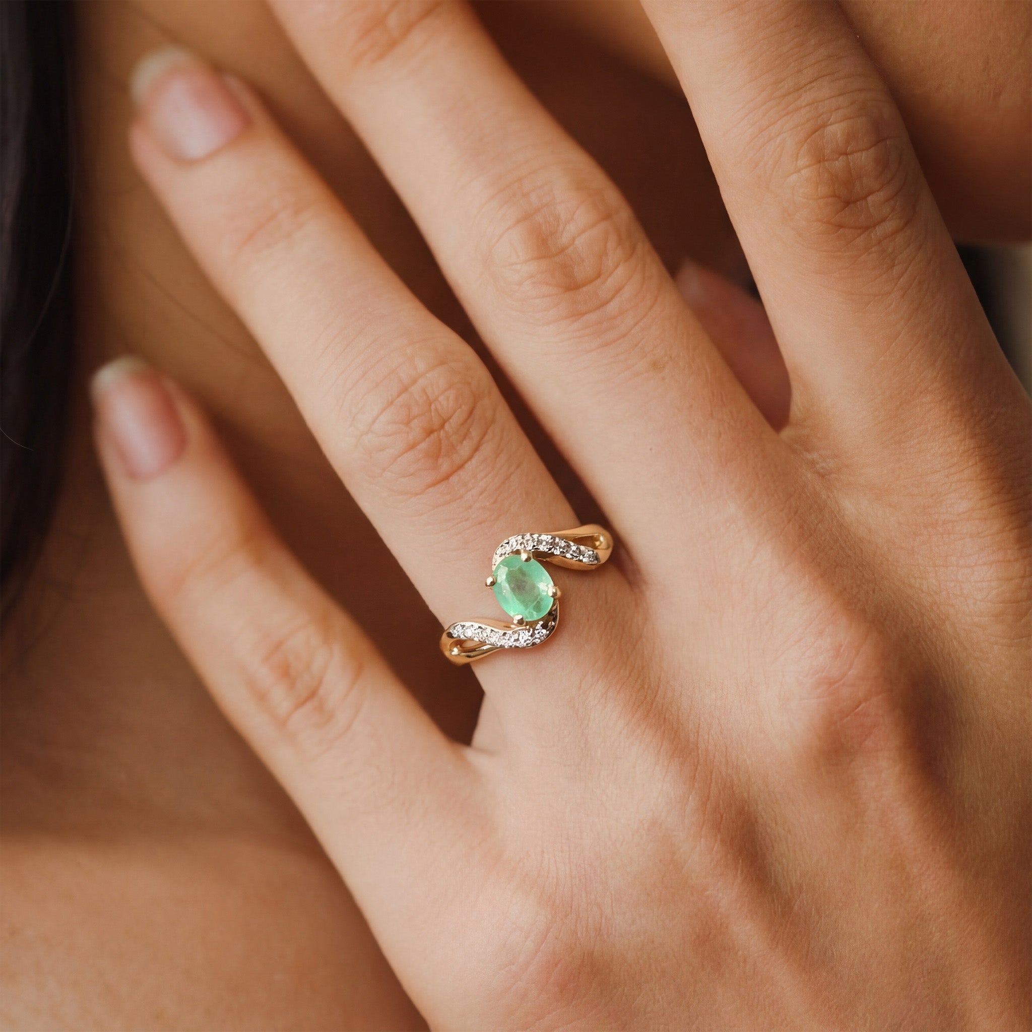 A delicate ode to serenity, the Mint Mirage Ring showcases a soft Emerald gemstone along with White Topaz, elegantly cradled between flowing curves of premium 925 sterling silver with gold vermeil. This silver ring captures the essence of quiet elegance, making it perfect for those who speak volumes through their presence. Timeless and refined, it’s a ring that complements both everyday style and special moments.