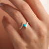 Make a striking impression with the Oasis Ring — a turquoise gemstone ring that captures attention with its vivid, round turquoise stone set in sleek 925 sterling silver. Sharp, modern chevron lines of contrasting white enamel frame the vibrant centerpiece, creating a bold, geometric silhouette.